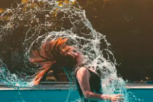 Muita gente pensa que o cloro é o responsável pelos cabelos verdes após um mergulho na piscina. Na verdade, o verdadeiro vilão é o sulfato de cobre, usado para combater algas. Ele se fixa nos fios, principalmente nos loiros, causando o temido esverdeamento. Mas atenção: cabelos de qualquer cor podem ser afetados!